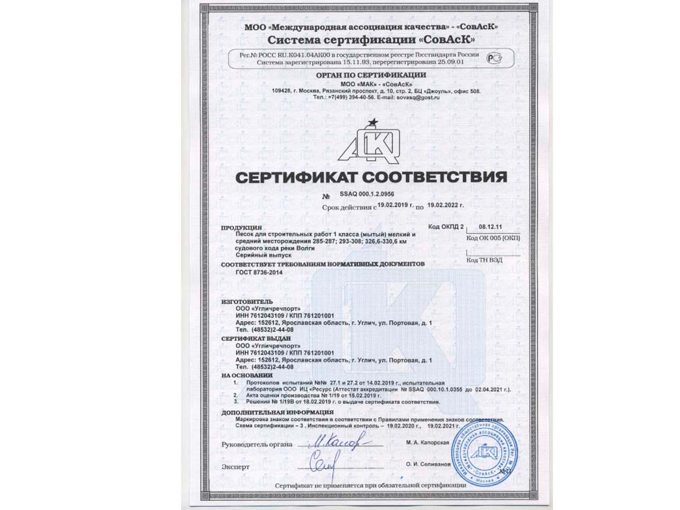Ознакомьтесь с паспортами качества и сертификатами на поставляемую нашей компанией продукцию, прежде чем сделать заказ. Это позволит вам экономить средства причем не только по возможным рискам, но и при заказе материала, к примеру когда на объект требуются именно конкретные показатели. Есть требования при которых вы можете использовать на объекте менее прочный материал, что естественно сказывается на его стоимости. Для обратной засыпки траншеи допускается использование карьерного песка, а для устройства верхней подушки основания только намывной – поэтому использование послойно разных типов песка может существенно удешевить затраты на строительство.